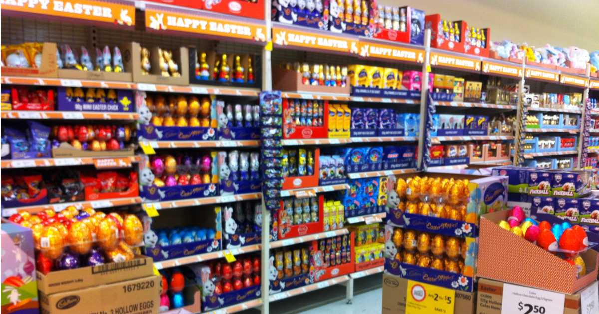- Smarties, Rolo or Milky Bar hollow eggs (the first two are around $8, the Milky Bar one around $5);