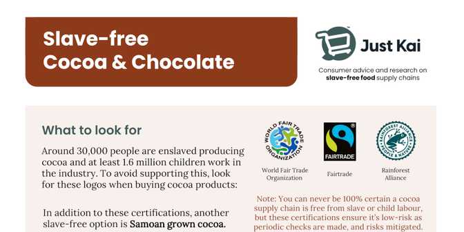 Just Kai's new guide to slave free cocoa and chocolate products is now out.